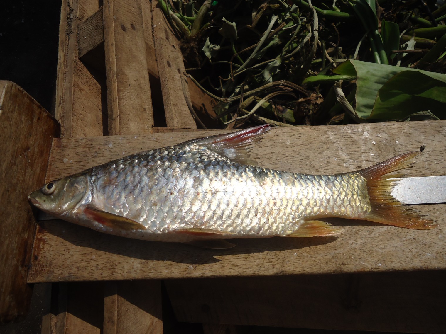 - Colour is silvery to yellowish. Anal and caudal fins tinged with pink, all other fins yellow-orange