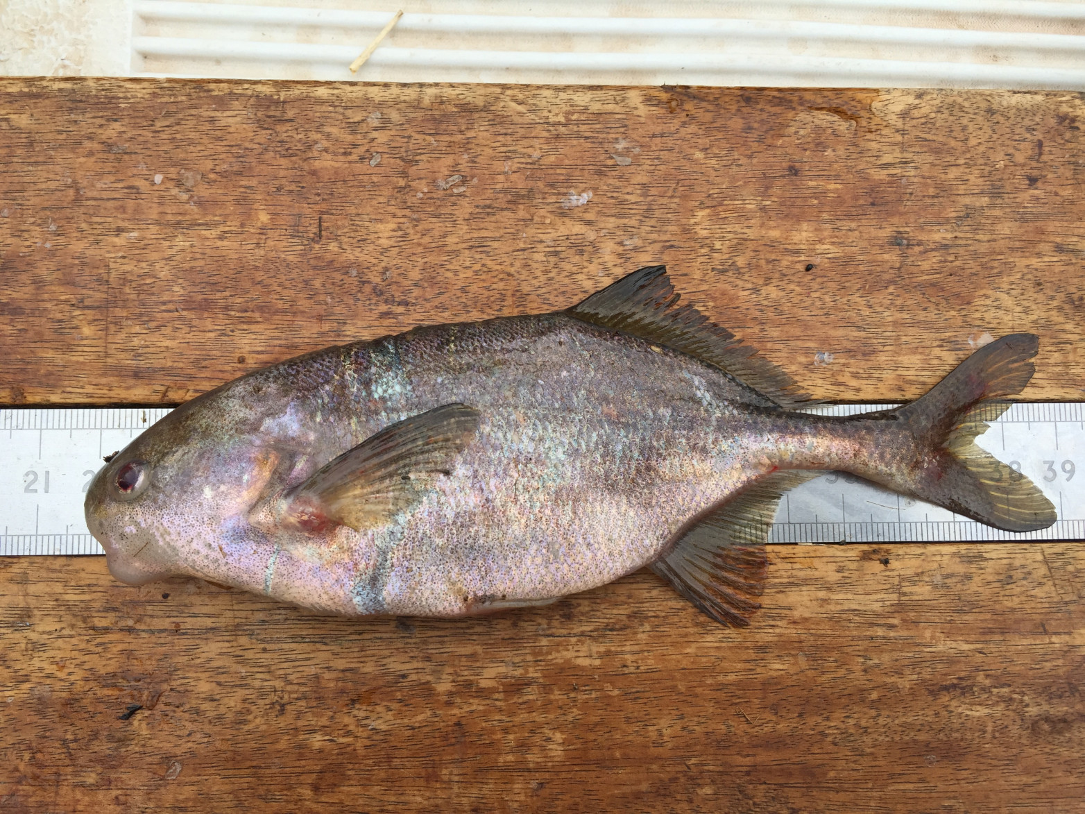 - Lateral line with 60-69 small scales; the caudal peduncal is 2.5-3 times longer than deep