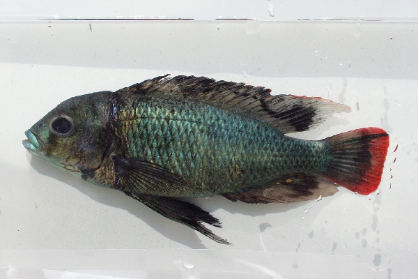 - Juveniles lack tilapia mark (dark spot at the posterior end of the dorsal fin)